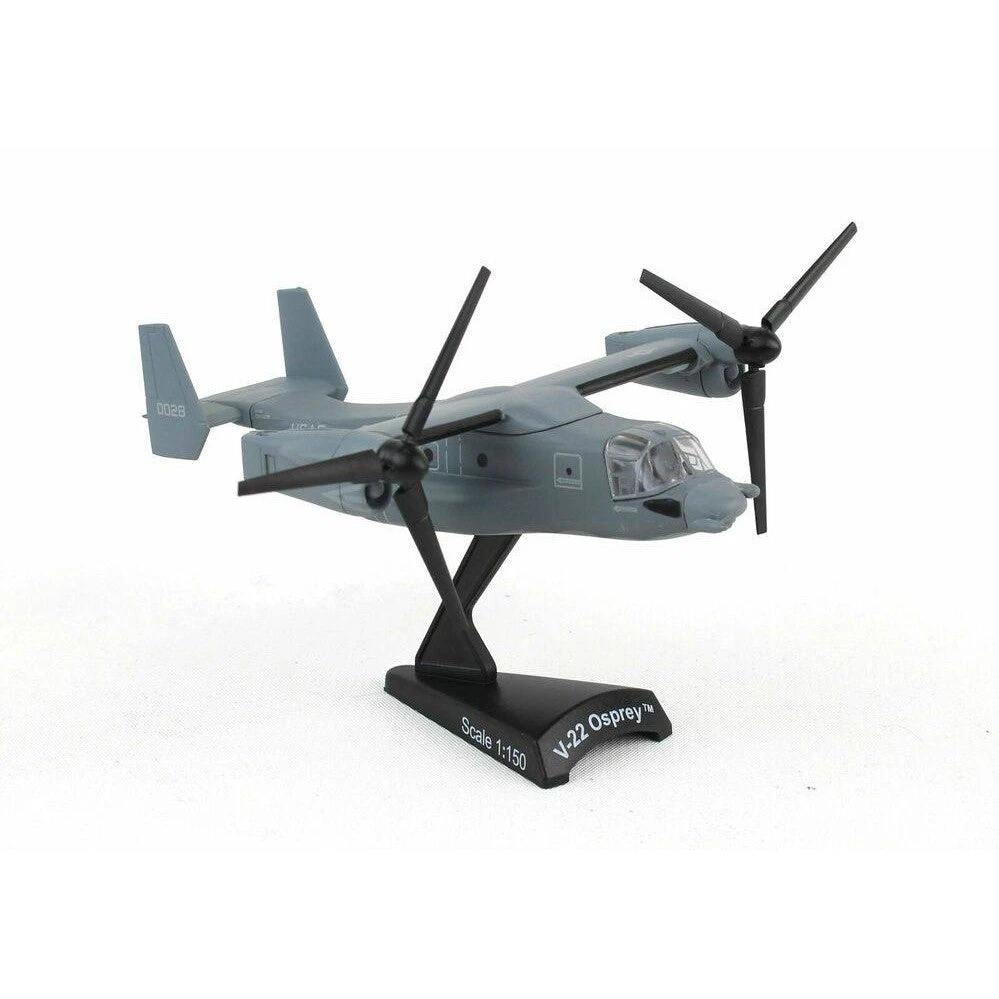 The Bell Boeing V-22 Osprey is a multi-mission military tilt-rotor aircraft, with both a vertical takeoff and landing and short takeoff and landing capabilities. The aircraft was designed to meet the needs of the Defense Department’s four US armed services. The V-22 takes off and lands like a helicopter, but once airborne its engine can be rotated to convert the aircraft to a turboprop airplane, capable of high-speed and high-altitude flight. This V-22 model is made to be displayed in the inflight configuration. It is mostly made of metal and very heavy/dense. It is certainly not a toy and will not survive been played with or a fall.