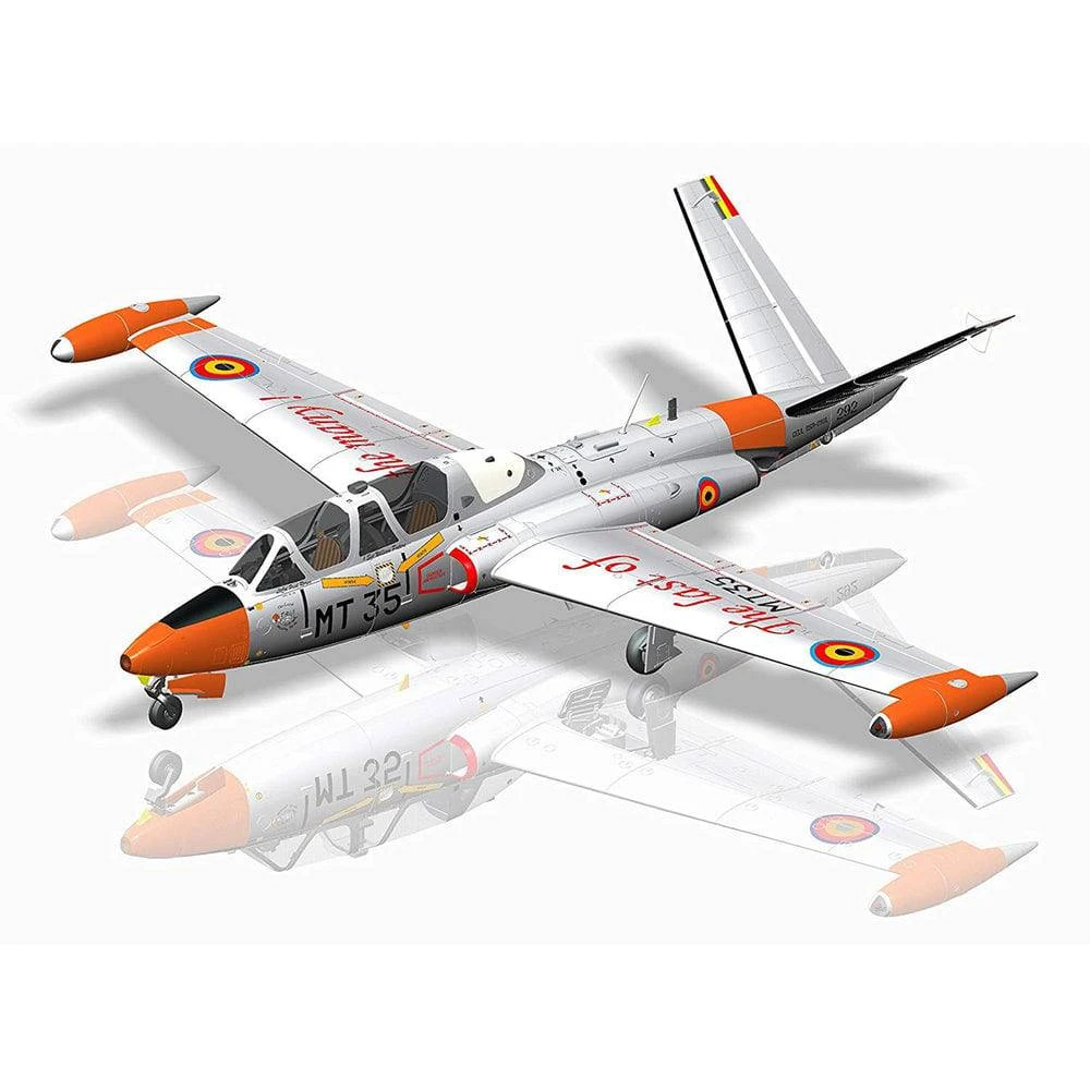 - A Belgian Air Force Fouga in natural metal finish, code Mt35. This aircraft received special markings in observation of the final flight of the Magister by the Belgian Air Force. Of note is the nose art on the aircraft, which reads “The Last Whistling Turtle”: a reference to the nickname applied to the aircraft by Belgian pilots
