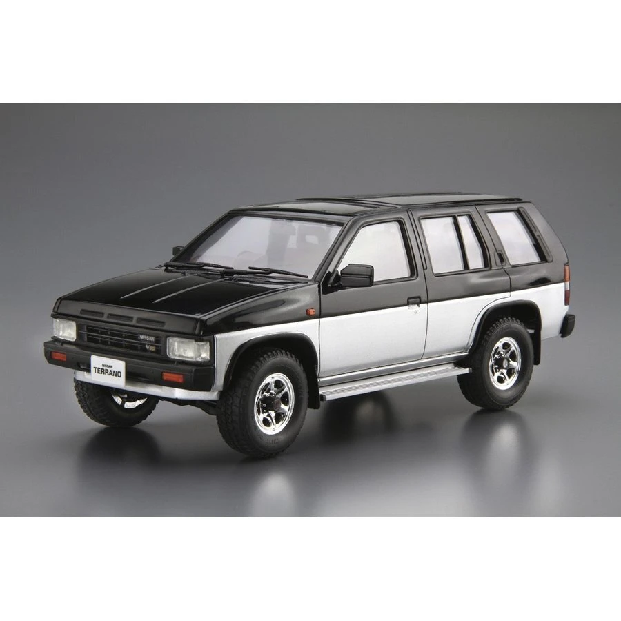 The 1st generation WD21 Terrano was based on the 9th generation D21 Datsun truck. Designed by the North American design studio, it resembled an American style body. Released in 1986, it soon became a popular model.This kit replicates the V6-R3M grade with 4-door and V6 V30E engine in its catalog specification with enlarged front bumper, grille guard and fog roof. Also with window masking seal and aluminum wheels included, you can build the Terrano of your preference