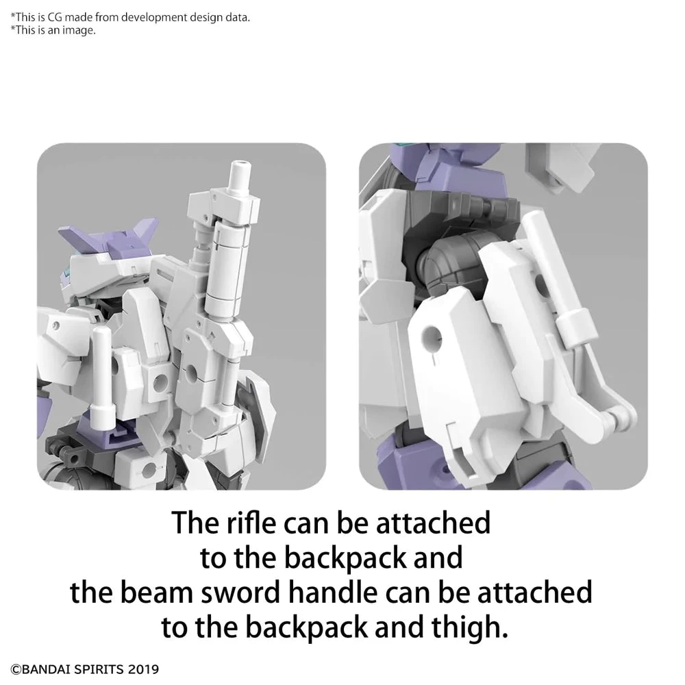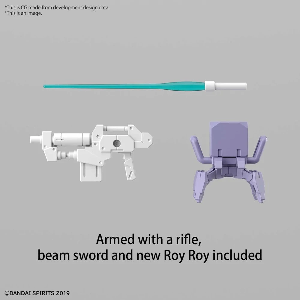 It’s easy to assemble with its “block” assembly system, making it easy to find and identify the parts needed next in order to assemble the kit. The new weapon known as the Roy Roy is included along with its rifle and beam sword; the hilt of the beam sword and the rifle can be attached to the backpack, and the beam sword’s hilt can also be attached to the thigh. Common 3mm joints make it easy to customize by mixing and matching parts with other 30MM series items, too. Order yours today!