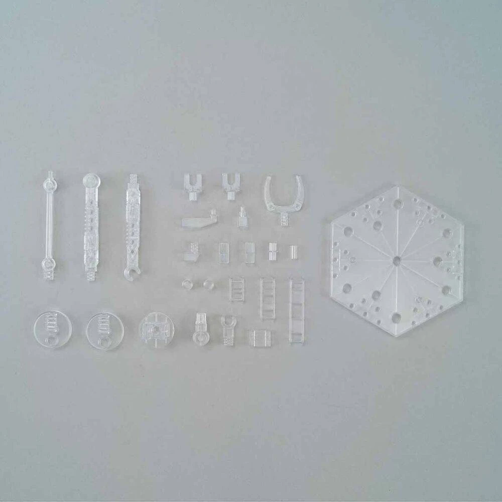The octagon base and the square part that can be connected to any one of its sides come with cool mechanical detailing and panel lines, plus a total of 10 holes for placing the support pole for the main stand to adjust the main stand’s height. The support pole has an ingenious locking mechanism that allows it to extend or retract and is strong enough to hold the main stand in place. The main stand itself can also be extended upwards to pose your kit in a much higher position.