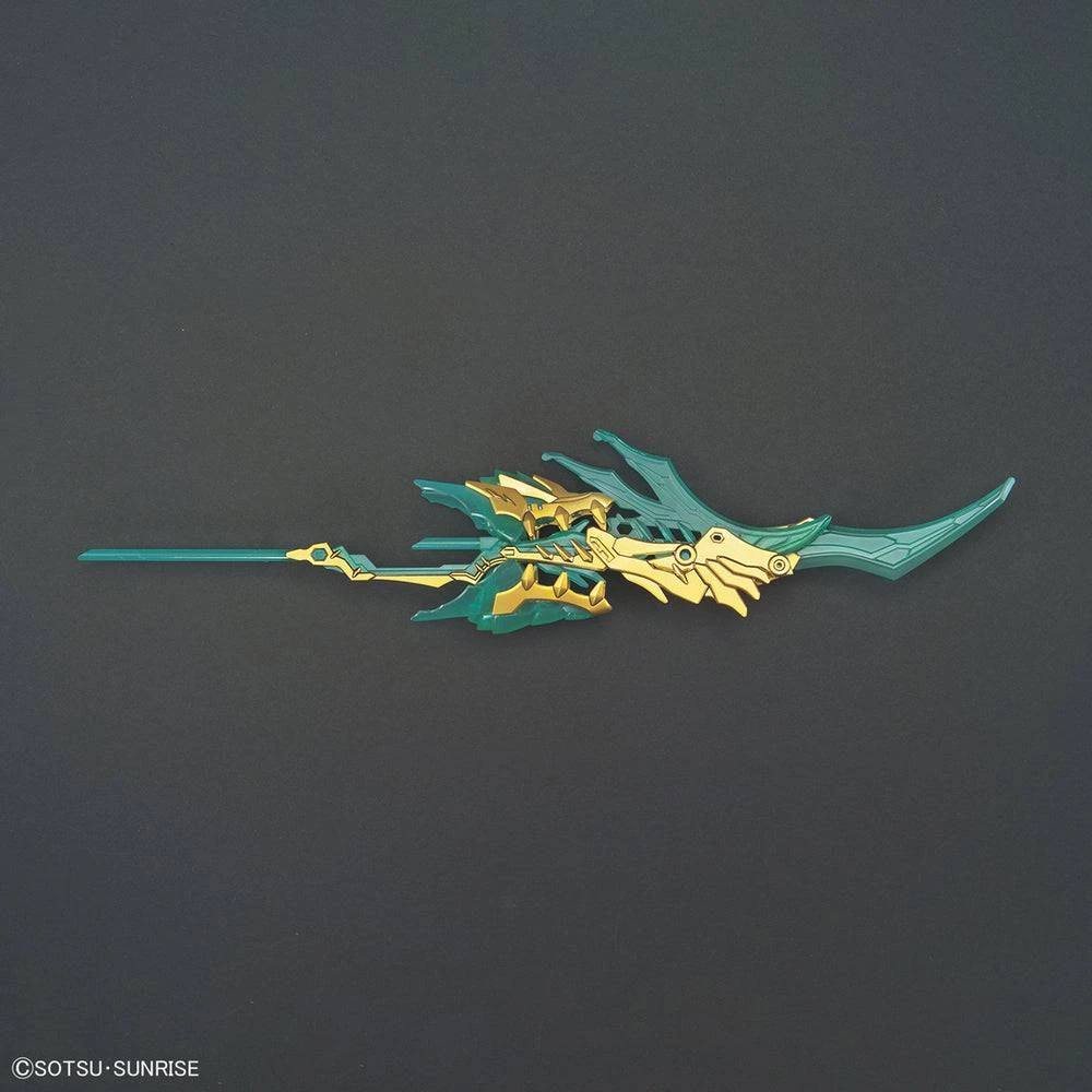 This form was achieved by Guan Yu from the final battle, utilizing the monstrously long Seiryuengetsuto Shigoku that can strike opponents from outside close combat range. Its components can be arranged on the back to resemble the Nu Gundam’s fin funnels. Reproducing poses full of dynamism by renewed head and body balance and various joint structures. With the advanced proportions and attention to the division of parts, the highest color coding in SD history is realized just by assembling.