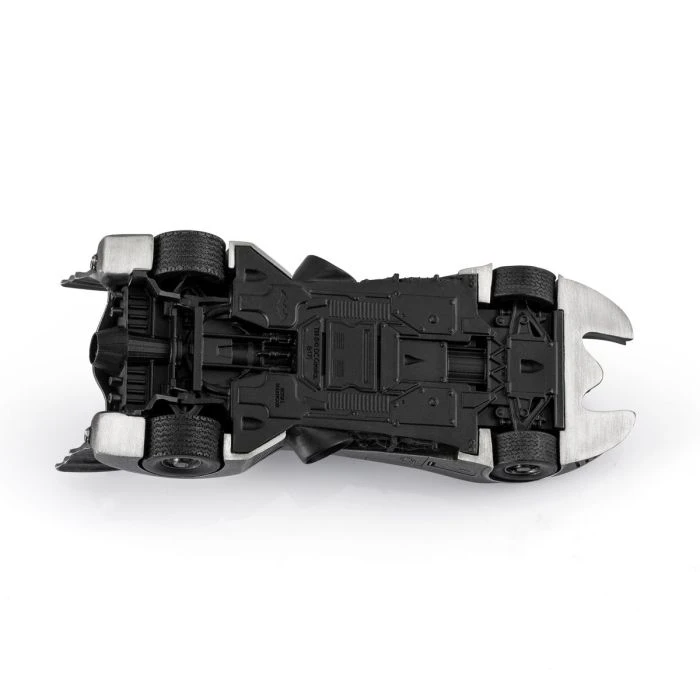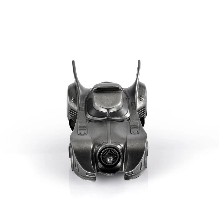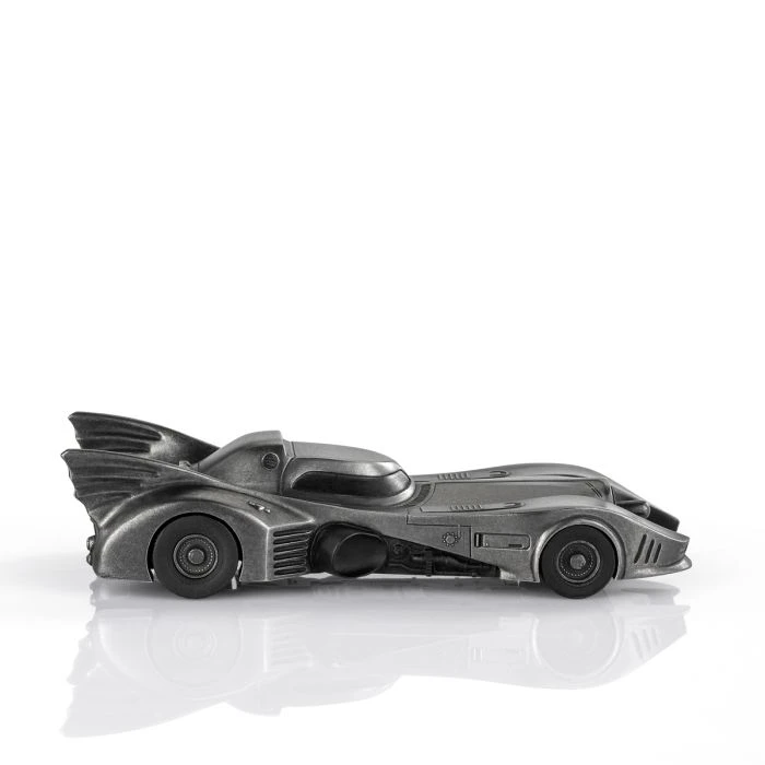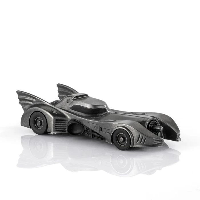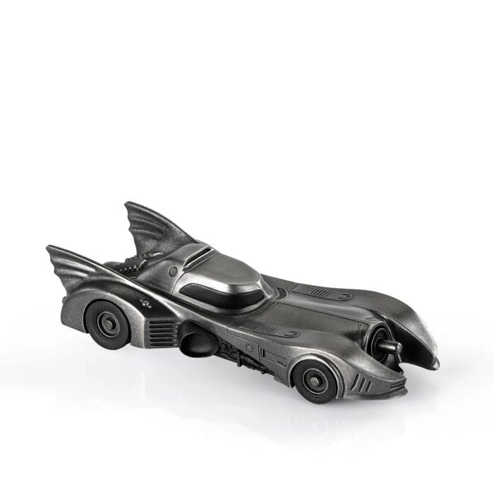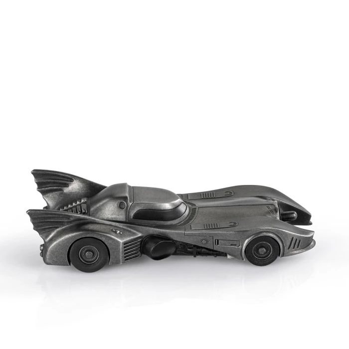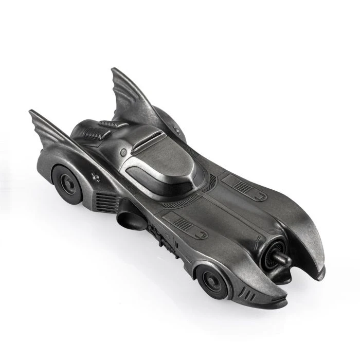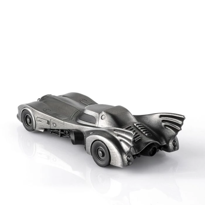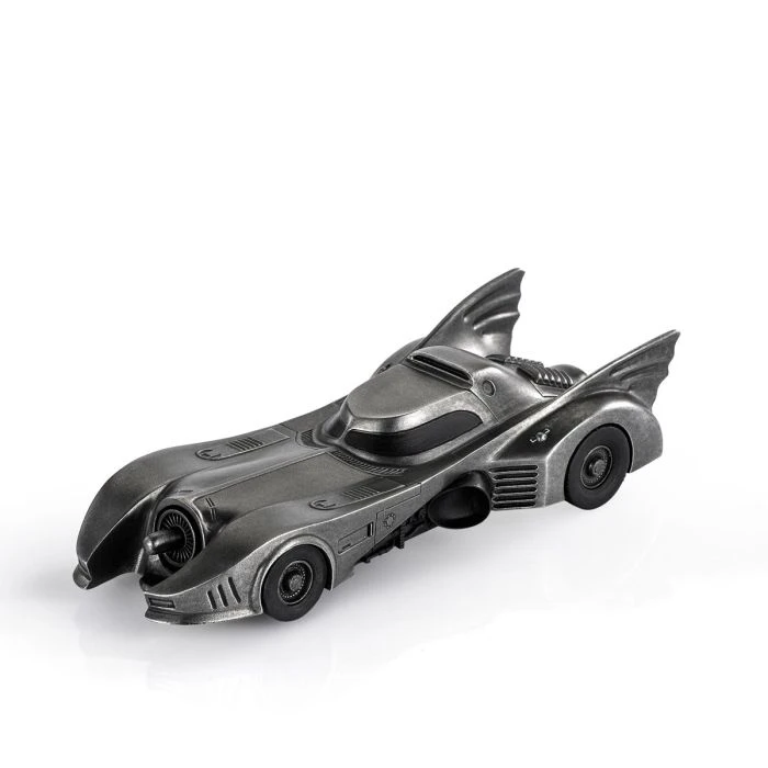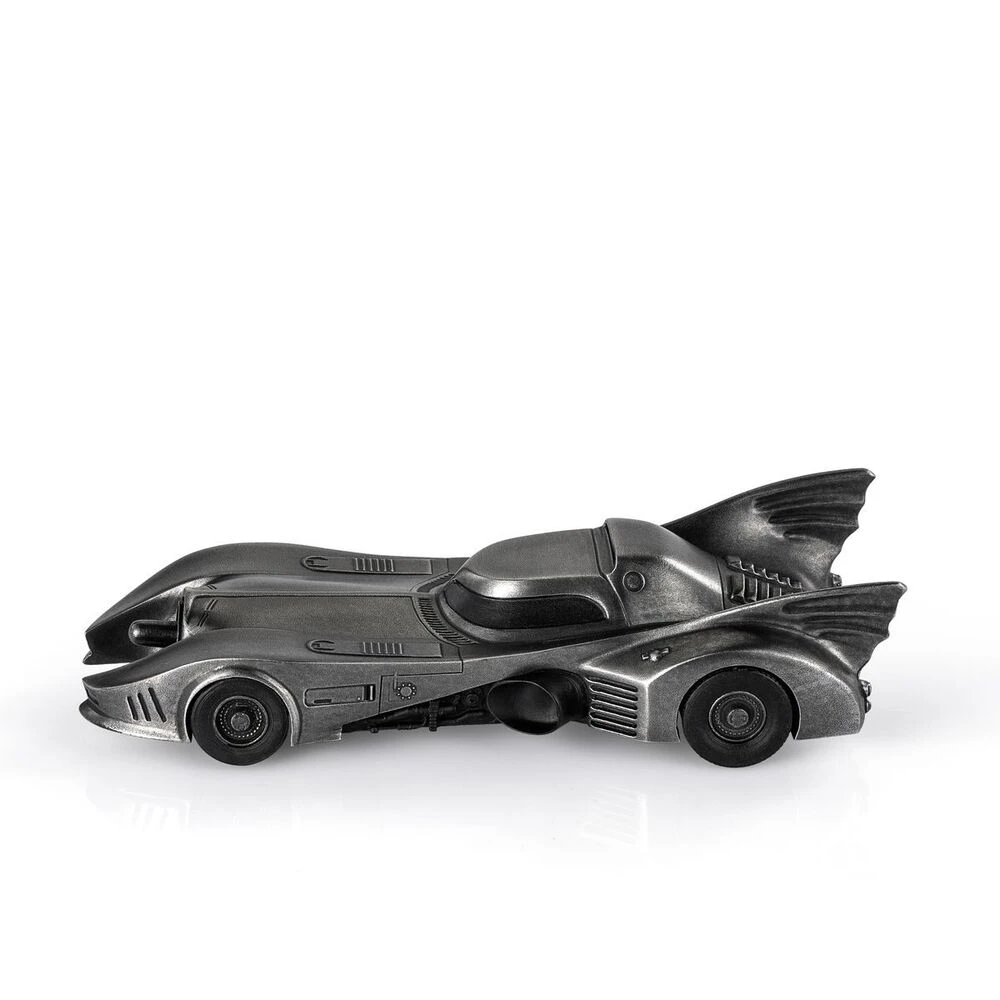 The iconic Batmobile from director Tim Burton’s 1989 Batman and 1992 Batman Returns theatrical releases. Presented in a dark antique finish to approximate the vehicle’s customary appearance, but with the glimmer of pewter adding an intriguing sheen.