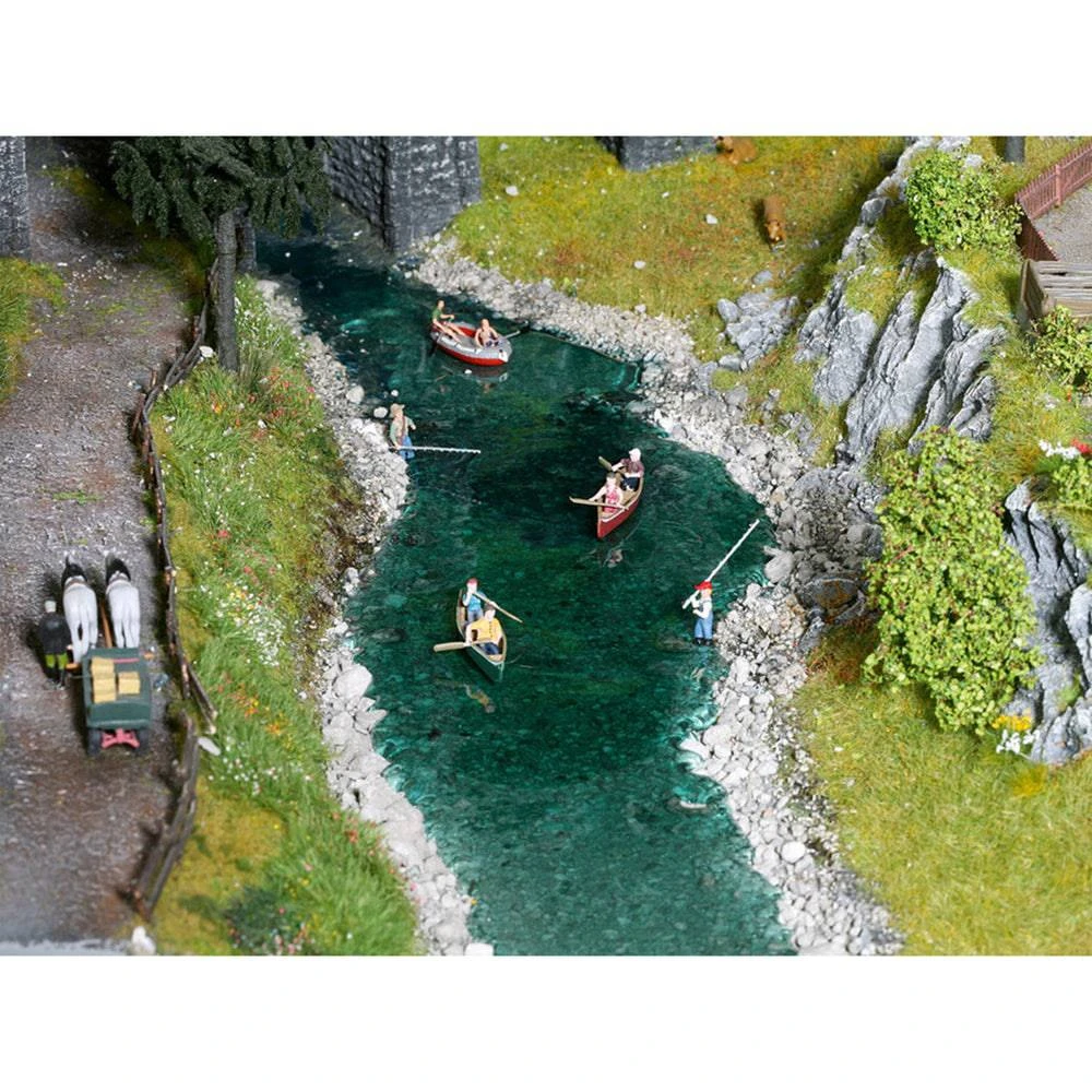 Two things make the Water-Drops® in the water-shaping indispensable: their easy processing and the ability to make by heating can later be details such as waves or rapids. As a product family, there is the Water-Drops® in three versions: The Water- Drops® are transparent ideal to make crystal clear lakes, rivers and streams. For the color design of the underground waters, we recommend the basic color set (ref. 60875). The Water-Drops® color in addition to the transparent Drops for mixing and blue, green and brown Drops. To make your own individual water color. The Water-Drops® easy simplify working with the Water-Drops® in addition. Simply remove the cover and put the mug of heat-resistant plastic in the oven and melt.