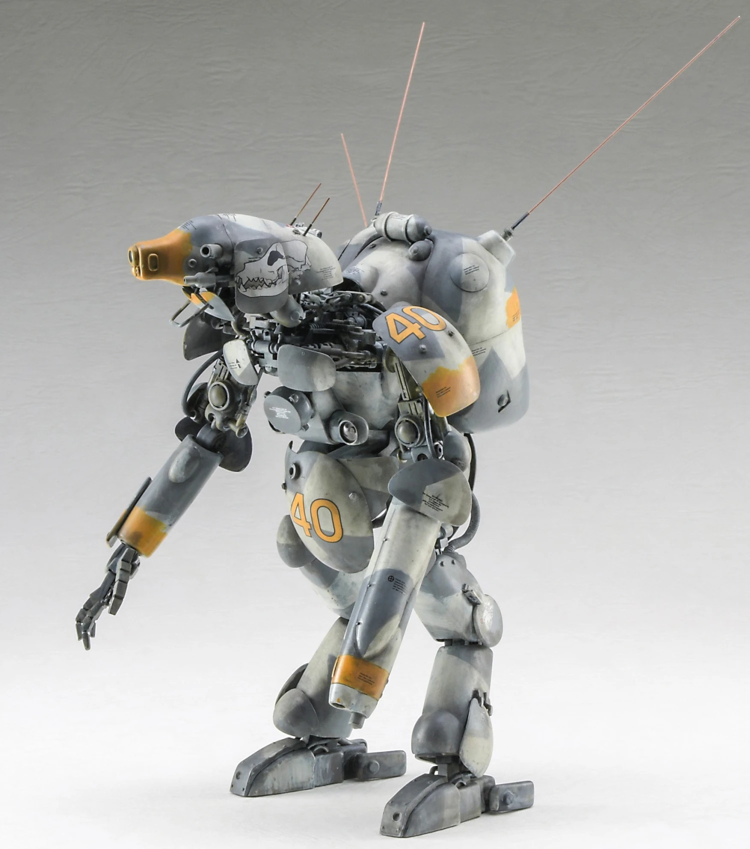 The humanoid-type unmanned interceptor version of the Moon Glow Surfunt Lunafund from “Maschinen Krieger” gets a new model kit from Hasegawa! It features a derivative of the Dachshund’s head with a lunar-supported Vega. The parts are cast in titanium silver plastic, and a stainless steel rod is included to reproduce the rod antenna. Newly silkscreened decals will be included for four versions, and painting scheme cards are also included. Order yours today!