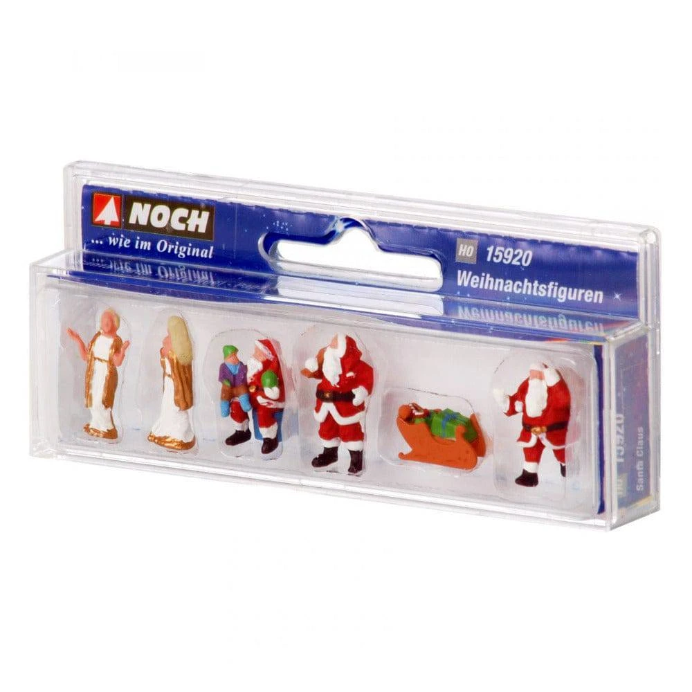 The “Santa Claus and Angels” figure set contains 5 figures resembling two angels and a group of three Santa Claus in various poses.