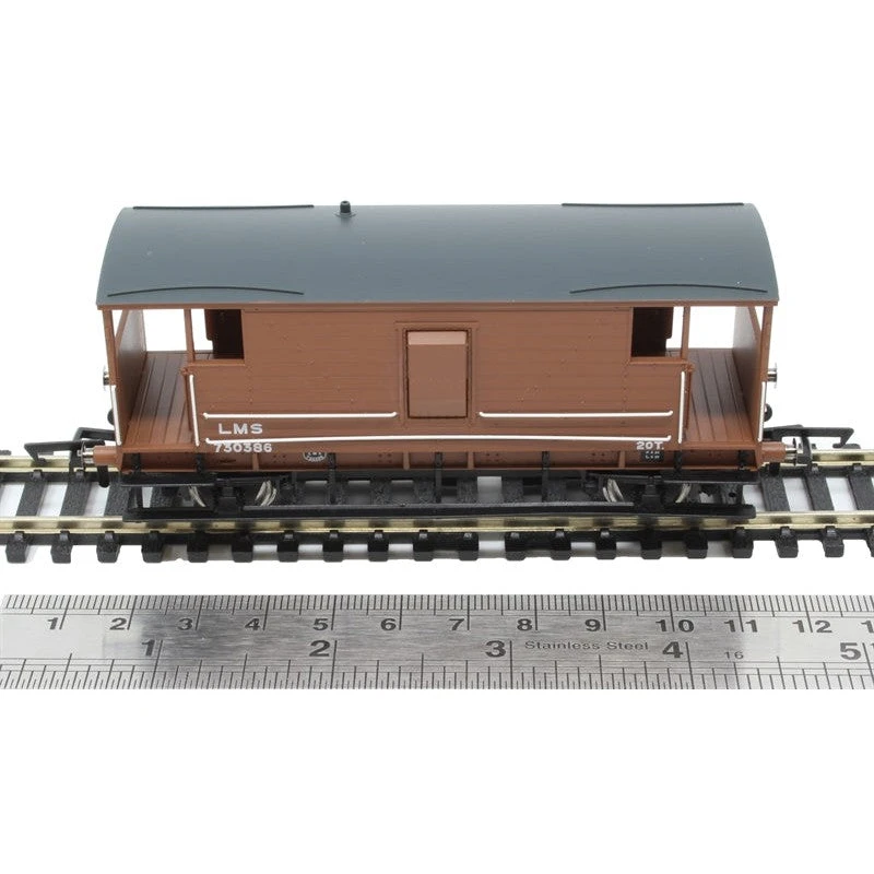 This model is a LMS Diagram 1919 Brake Van in its original LMS configuration and brown livery. Whether your layout is a 1940s city or small village, this wagon is guaranteed to complete the whole scene with its plank detailing and brown painted finish.
