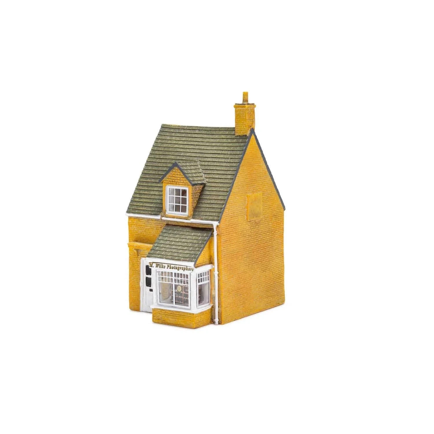 Expand your model railway layout with scenic accessories and buildings to add a realistic edge to your model world. This realistic resin building is a lovely representation of a small independent photographic shop, typical of that found in the market towns of the Cotswolds.