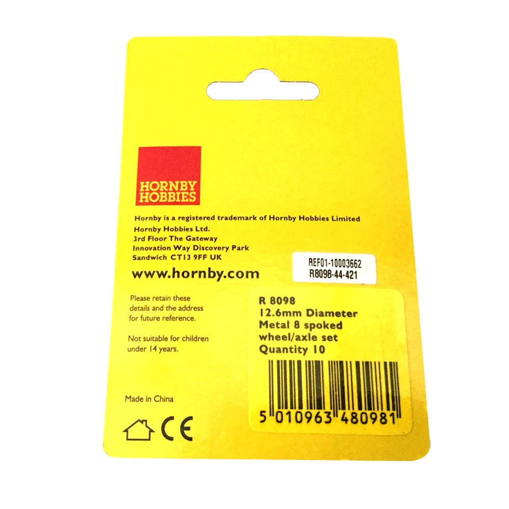 These Hornby R8098 Metal Disc Wheels and axles are direct replacements for those fitted to many Hornby locomotives, passenger coaches, trucks and wagons over the years. These wheels have spoke discs. Hornby is a household name and is famous as the UK’s brand leader in the model railway hobby with its high quality 00 gauge (1:76) models and accessories. A must have for railway modellers and enthusiast and a great addition to your collection or landscape models.