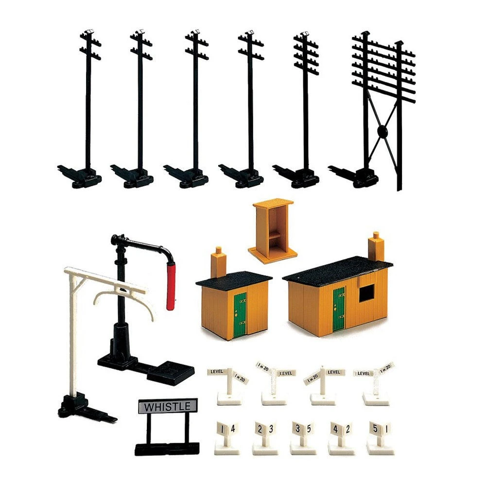 This accessories pack is perfect for adding those subtle yet realistic details to your railway layout, as well as a gift for the railway enthusiast in your life. This pack contains huts, telegraph poles, water crane, loading gauge, whistle sign, and mile and gradient posts.