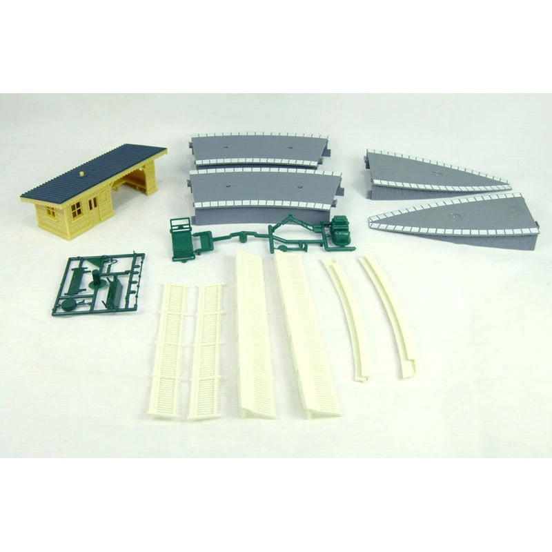 Extend your set in easy steps by adding Track Packs and TrakMat Accessory Packs all the way to the full layout pictured on your TrakMat scenic underlay sheet. Contents: Station Halt, Curved Platform x 2, Platform Ramps x 2.