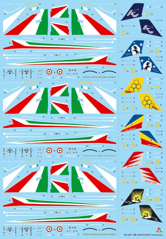 The 313th Gruppo Addestramento Acrobatico of the Italian Air Force, better known as Pattuglia Acrobatica Nazionale “Frecce Tricolori”, is based at the airport of Rivolto, in the northern part of Italy. The 313th was officially born in 1961 as a very professional and highly specialized acrobatic unit with the purpose to represent, all over the World, the Italian Air Force. At the beginning the team has been equipped with the Canadair CL-13 “Sabre” and, after few years it has been replaced by the glorious Fiat G-91 PAN. Today the “Frecce Tricolori” flies the two-seat fighter-trainer Aermacchi MB 339 A and it is the biggest team , with more than 10 airplanes. In 2021 the P.A.N. foundation welcomed its 60th anniversary during which the “339” were displayed with commemorative liveries that celebrated the legendary acrobatic patrols of the Stormi in the 1950s.