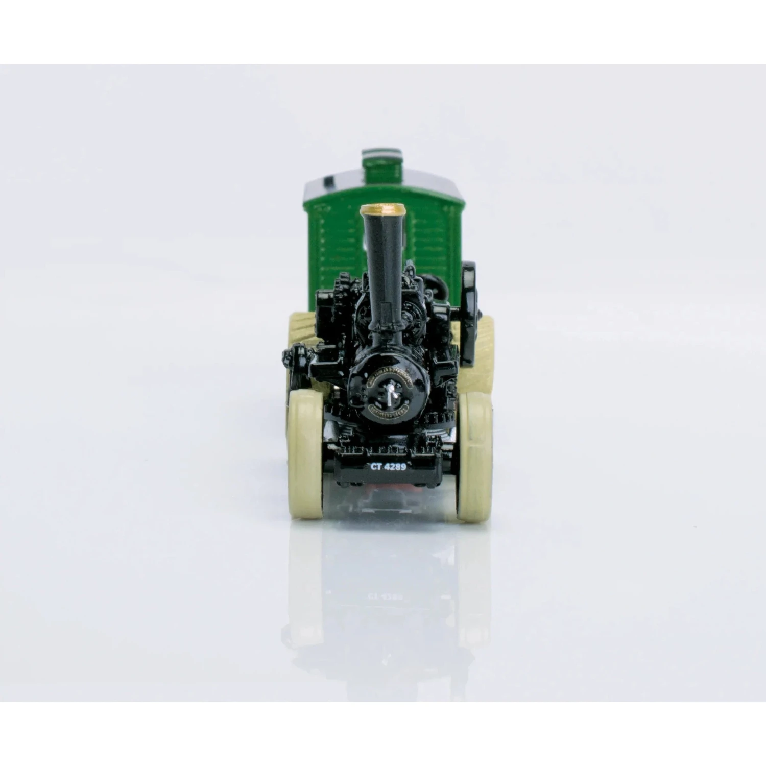 This ploughing engine No. 15222 is pulling the equally distinctive Living Wagon. The engine is decorated in black with gold and red lineout and features a shaped chimney stack, textured wheels and a cable feed on the offside. It is registered CT 4289.