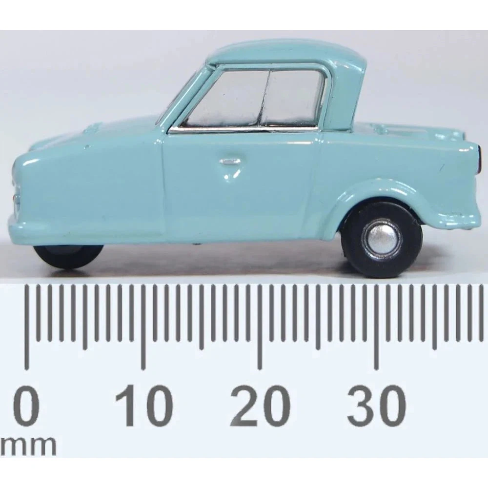 Our 1:76 Scale Oxford version of the wedge-shaped Invacar with its inward sloping rear window and wide side doors, will appear in the traditional ice blue colour of the original, registered KPK 71P from 1975/76. All the interior features are finished in black and the model is rounded off with silver wheels.