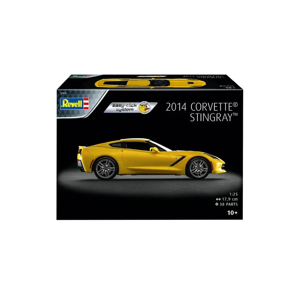 The popular easy-click model kits are in a classy promotion box with a great design. Simple model kit for the 466 hp, current super sports car, which bears the name Stingray again after more than 30 years and perfectly combines race track performance with suitability for everyday use.