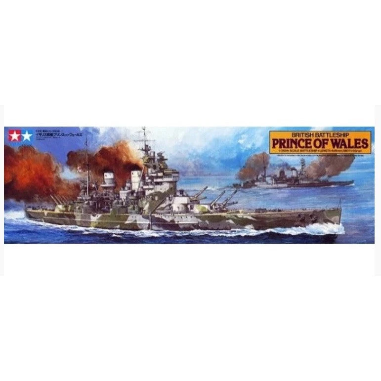 The HMS Prince of Wales took part in a number of important actions early in WWII such as the hunt for the German battleship Bismarck. She later had the misfortune to become one of the first capital ships to be sunk by airpower when she was sunk by Japanese bombers together with HMS Repulse. This assembly kit depicts the ship as she appeared during the fateful Battle of Malaya in December 1941. Differences from the HMS King George V, such as the bridge area and anti-aircraft armament, have been replicated. The kit also comes with parts to depict her Supermarine Walrus seaplane as well as Japanese G3M and G4M bombers (1 each). Comes with a display stand with name plate.