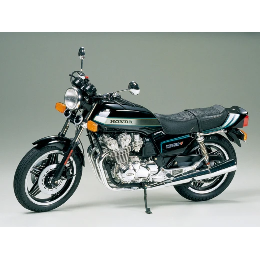 The Honda CB750F Motorcycle first appeared on the Japanese market in June 1979 and was shortly the best seller in the 750 motorcycle class. Just ten years prior to their CB750F, Honda opened the field of multi-cylinder, large-bore bikes with the now famous four cylinder CB750. Honda had extensively tested the multi-cylinder concept and won several Grand Prix motorcycle races, and the CB750 was based upon these experiences. The engines worked flawlessly and provided very smooth power with almost no vibration, and so shocked the industry, that soon many of the famous makers also produced four cylinder large cubic motorcycles. Honda, of course, held the number one position in sales for many years, but then Kawasaki released their Z series DOHC 750 bikes, and took over the number one position, relegating Honda to 2nd place. Honda, however, did not take this set back for long, and continued to improve their engines, and in 1979 released a CB 750K DOHC with four valves per cylinder, a powerful 68hp, and completely new body styling. It was not long before Honda was again number one! The CB750F, released in June 1979 was styled after the very popular European Honda CB900F, which had been copied from their racing RCB bike. This styling was new to stock motorcycles of the world. The low positioned handle bars and rear positioned foot rests, allow a slouched riding position and this style is what set the standard for the eighties.