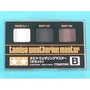 Tamiya once again takes the lead in modelling innovation with this Weathering Master set. Weathering means adding realistic-looking effects to your models, such as sand on tank treads and mud-caked rally car bodies. These new Tamiya Craft Tools offer by far the easiest way to achieve realistic weathering effects. Weathering Master comes in a pocket sized case with 3 colors and special applicator tool.